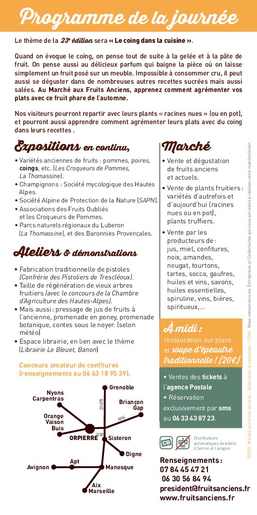Comme chaque année le samedi avant la Toussaint, nous organisons un grand Marché aux Fruits Anciens dans la commune d’Orpierre